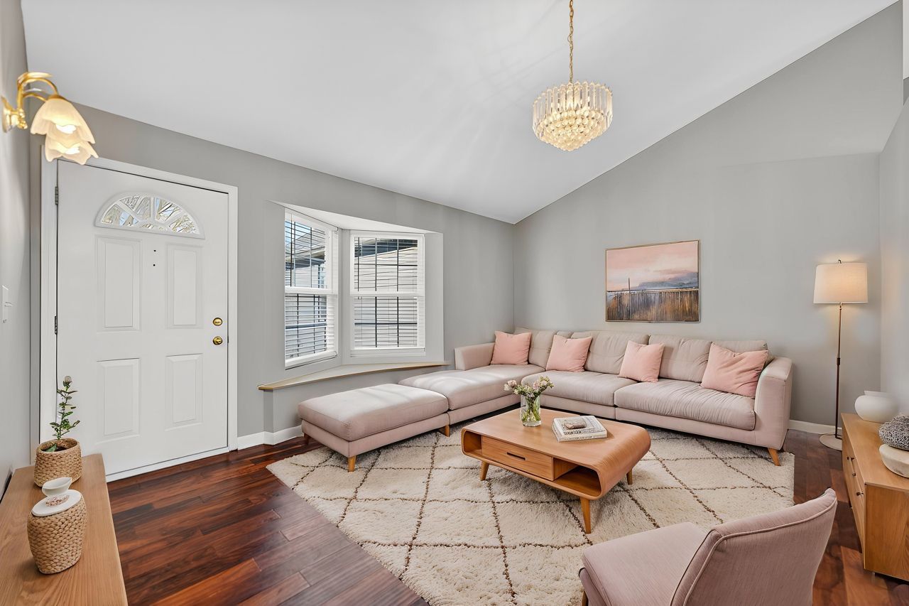 Step into the ease of ranch-style living-with space, flexibility, and standout features designed for today's lifestyle! From the moment you enter, you're welcomed by a bright, open living room with soaring vaulted ceilings and a charming bay window that fills the space with natural light. The open-concept layout flows effortlessly into the inviting family room, where a gas log fireplace with a stunning marble surround creates the perfect setting for cozy nights or relaxed mornings. Warm engineered hardwood flooring spans the main level, tying each space together beautifully. The spacious kitchen offers ample room for meal prep and gathering, with a generous eating area ideal for everyday dining or entertaining guests. The main level features three well-appointed bedrooms and two full baths, including a serene primary suite with vaulted ceilings, a planter shelf, dual closets, and a private ensuite bath-your own peaceful retreat. A large laundry room with built-in cabinetry adds convenience and extra storage right where you need it. Downstairs, the fully finished basement expands your living space in all the right ways. Enjoy a massive rec room perfect for hobbies, play, or entertaining, plus your very own home theater with built-in AV cables, a popcorn center, cabinet shelves and a separate media center room, complete with a wet bar, with a marble tile floor, for the ultimate movie night experience. The rest of the basement features porcelain tile on the floor. With a separate private entrance, two additional bedrooms, and a full bath with an oversized shower, the lower level offers incredible potential for an in-law suite, guest quarters, or multi-generational living. Outside, you can unwind or entertain on the brick-layered stoop on one side, concrete brick-layered platform and the two concrete patios, all with a central fountain. It's the perfect space for grilling, dining, or simply relaxing. The partially fenced yard provides privacy, while additional space beyond the fence offers even more room to enjoy the outdoors. Ideally located near dining, shopping, parks, and everyday conveniences, this home truly has it all. Major updates include: Furnace, A/C & Central Humidifier (2021), Flooring (2021), Sliding Glass Door (2021), Siding (2016), Roof (2015), Washer & Dryer (2018). This is more than a home-it's a lifestyle upgrade. Come see the possibilities for yourself!